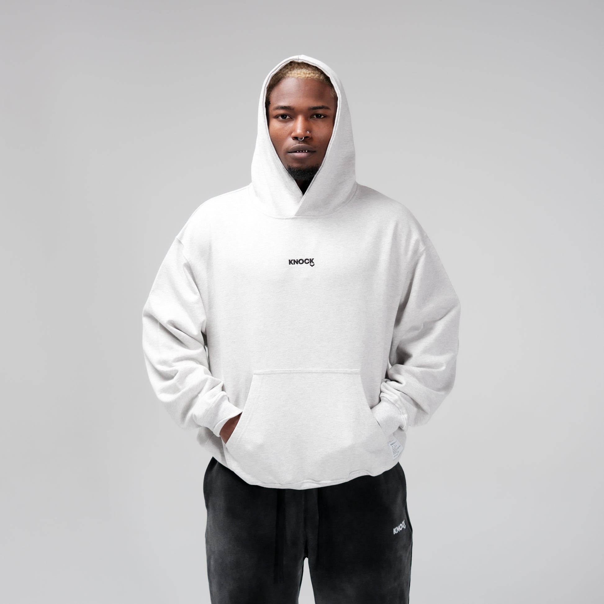 This is the Brickbound Hoodie - a long-awaited addition to the Knockdown collection. Crafted in a light melange grey, this is the first hoodie of its kind - a color our community has been asking for since day one.