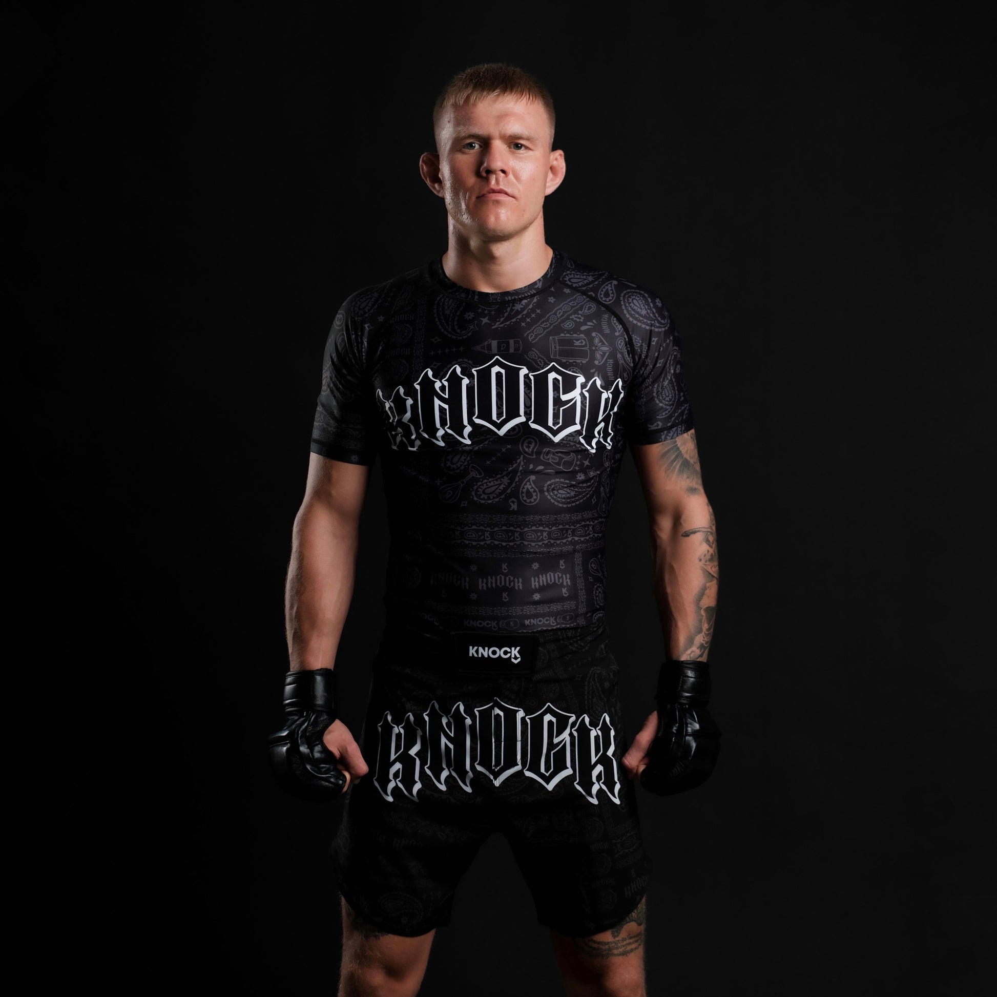 Gothic “KNOCK” front print with detailed paisley pattern