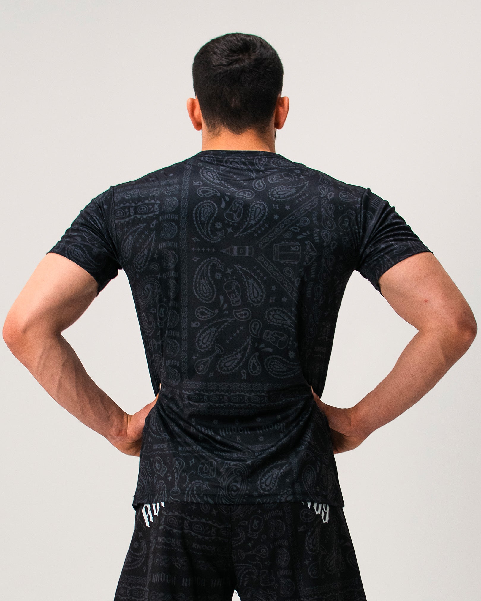 The blackout paisley pattern and custom symbols — designed by Lithuanian street art powerhouse Tadas Vincaitis — bring authenticity and detail to every inch. It’s not just a tee. It’s a statement.