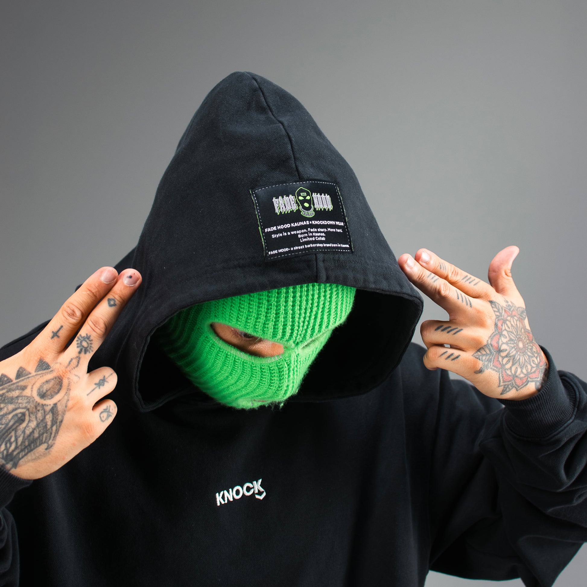 This is the Fade Hood X Knock collab — born in Kaunas, raised by wolves.