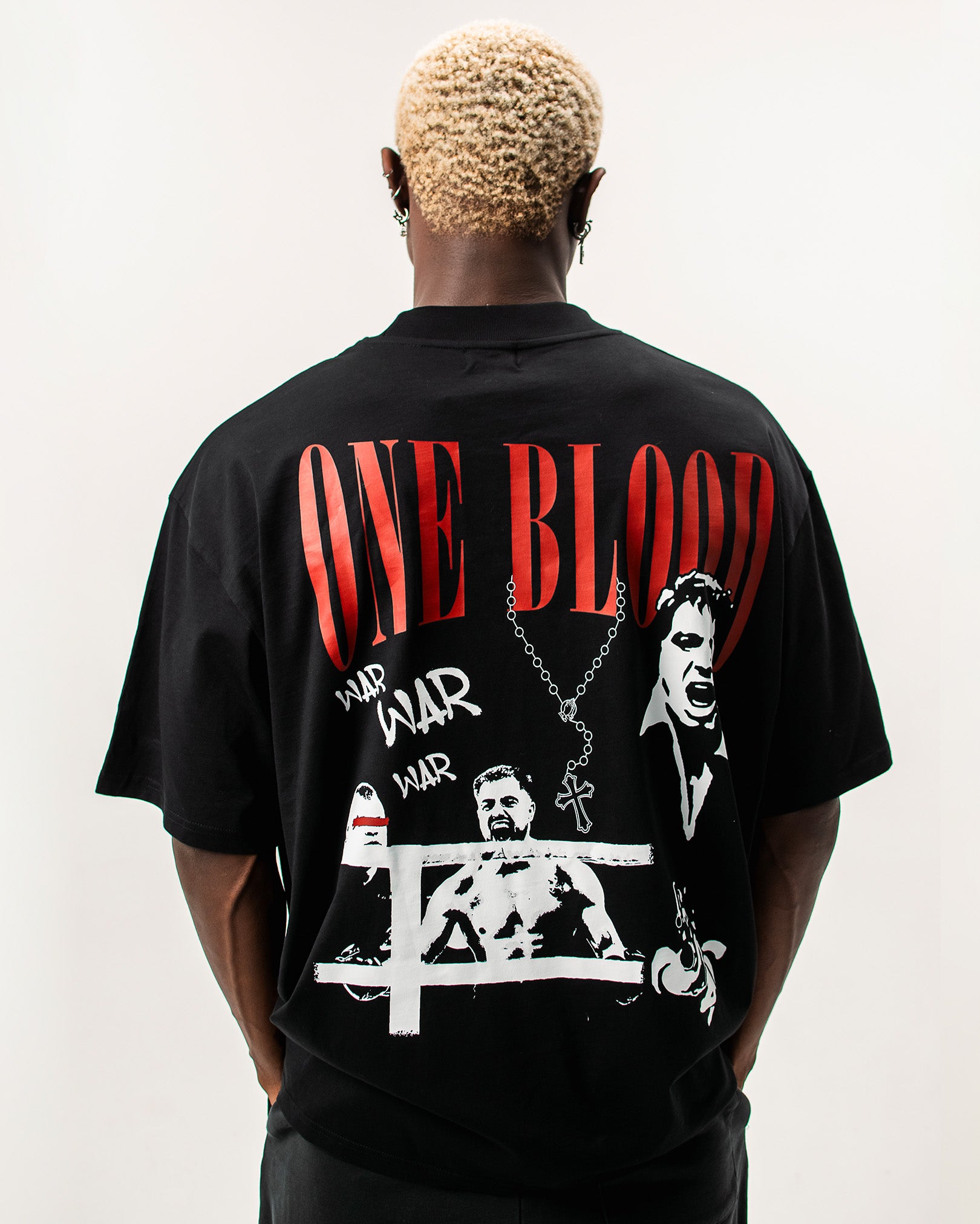Bold red “ONE BLOOD” – the symbol of shared roots and purpose