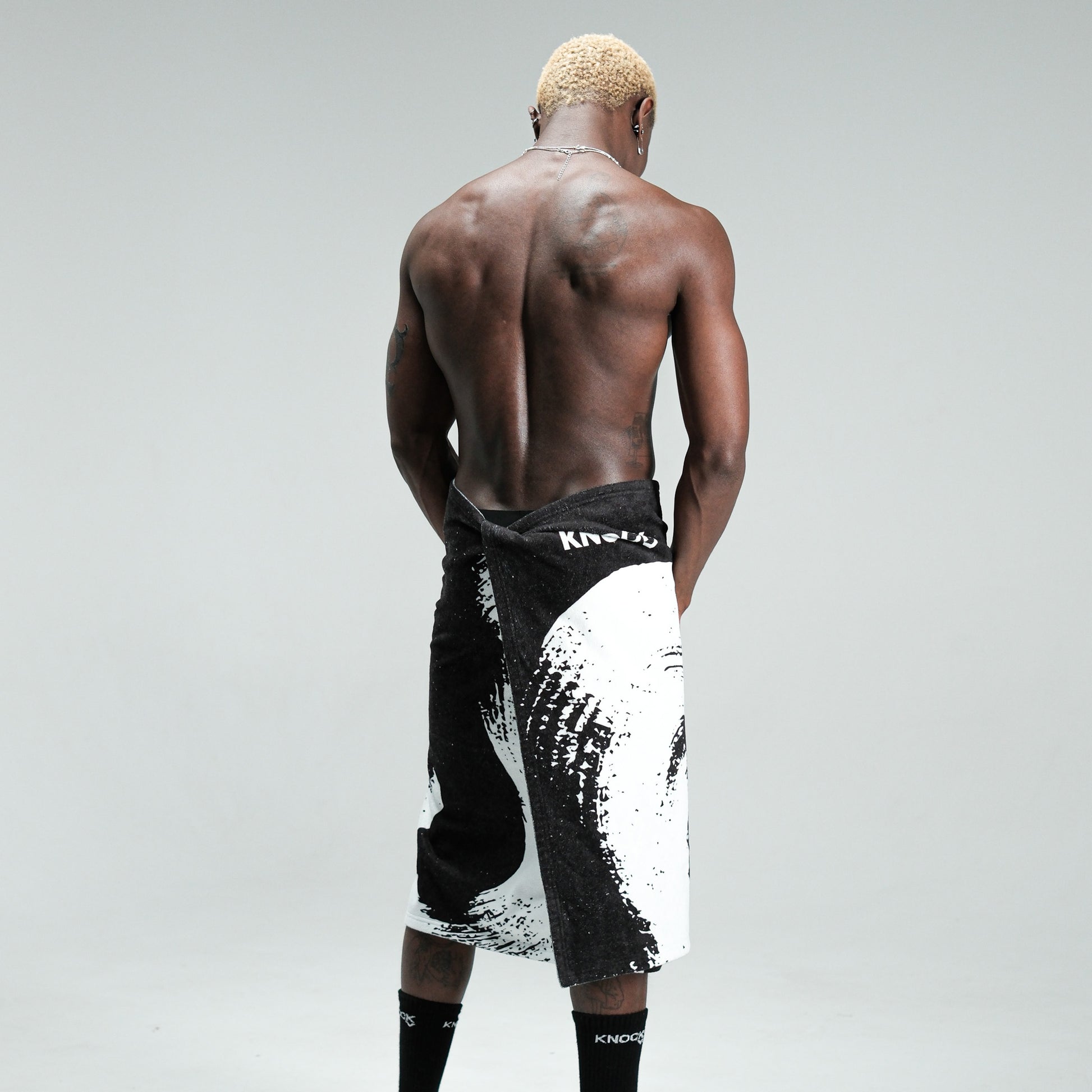 The towel features a signature brush design by Tadas Vincaitis, symbolizing movement, strength, and raw expression — perfectly aligned with the contrast of heat and cold therapy. Functional yet expressive, it elevates a simple essential into a statement piece.
