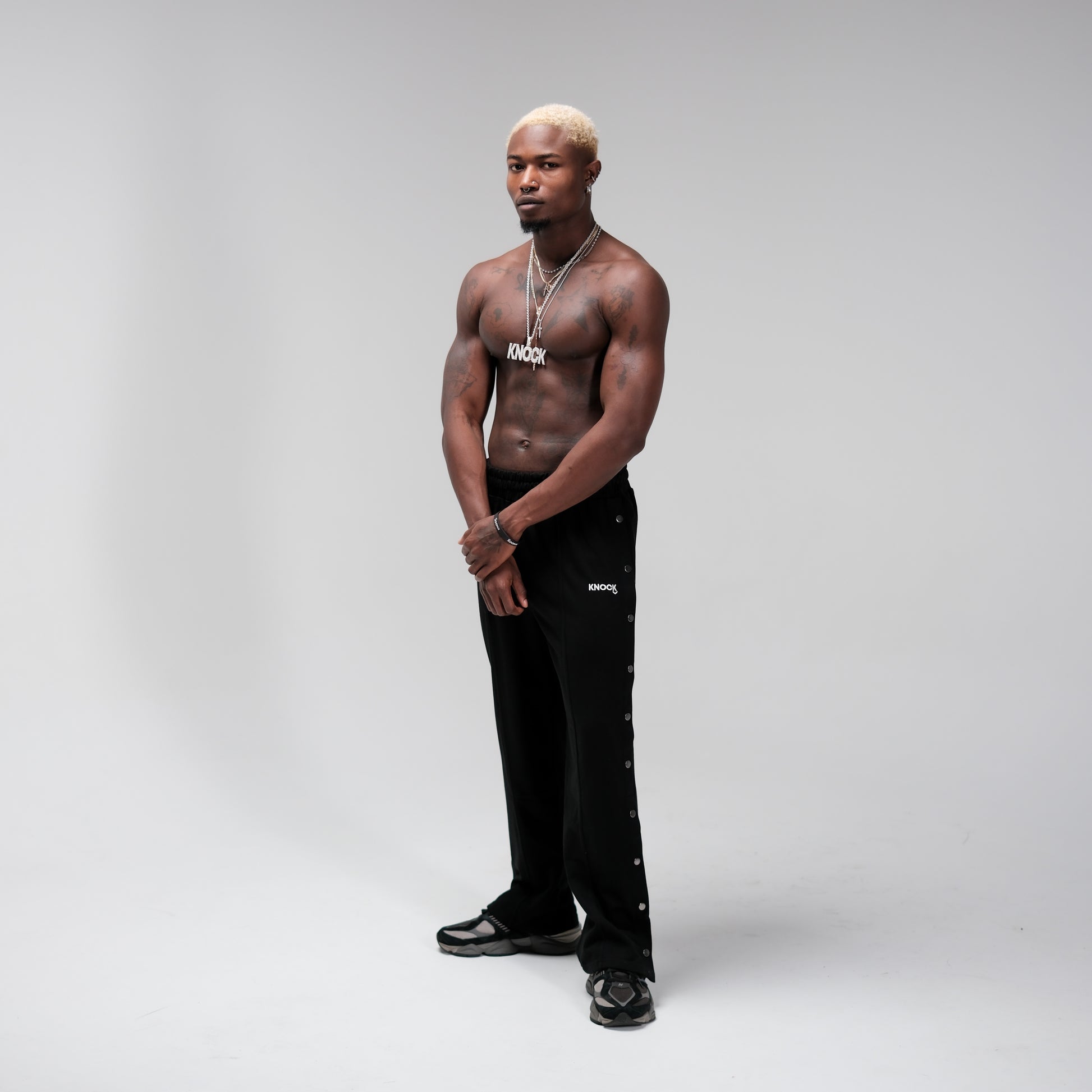 These are the Knock Side Snap Pants - a modern take on the classic tearaway silhouette. Designed for freedom, movement, and everyday versatility, they combine athletic heritage with street-ready style.
