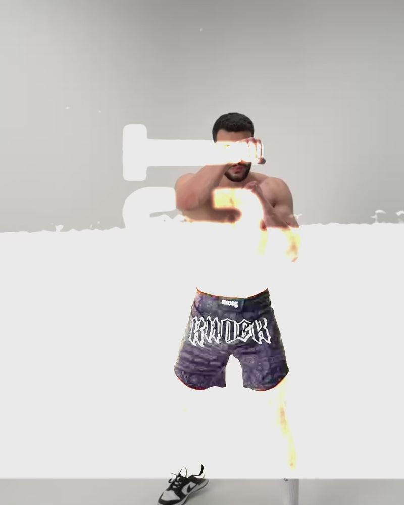 Engineered for those who live by discipline and fight with purpose, the Real Ones Only Fightshorts V2 fuse high-performance combat wear with bold street art expression. Featuring an all-over custom pattern and standout "KNOCK" gothic lettering, these shorts were designed in collaboration with renowned Lithuanian street artist Tadas Vincaitis, bringing a unique visual identity to your fight gear.