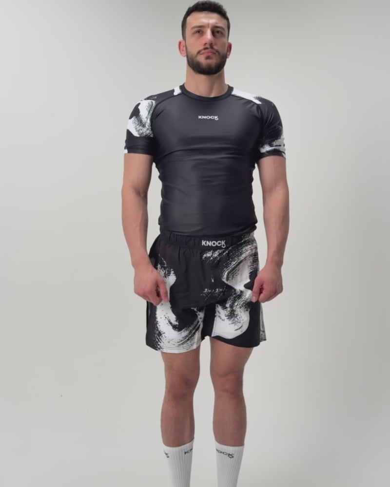 Brand new compression wear designed by the iconic Lithuanian street artist Tadas Vincaitis. Built from top-tier materials, featuring a rubberized waist on the rashguard. Finished with Knock’s signature brush design for that bold, unstoppable look. Built to dominate.