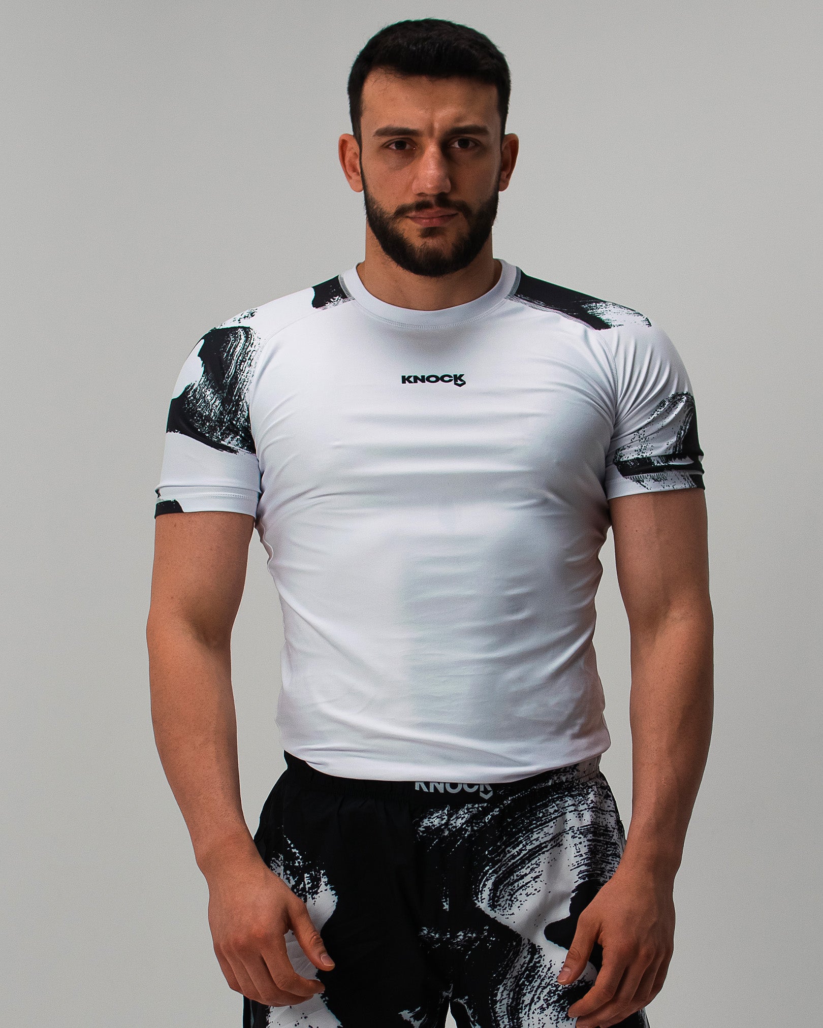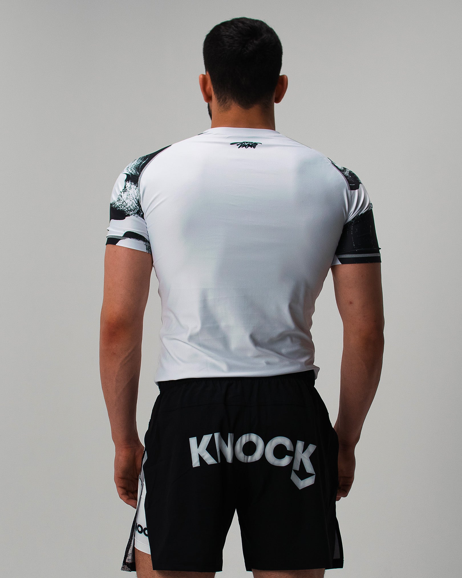 Brand new compression wear designed by the iconic Lithuanian street artist Tadas Vincaitis. Built from top-tier materials, featuring a rubberized waist on the rashguard. Finished with Knock’s signature brush design for that bold, unstoppable look. Built to dominate.
