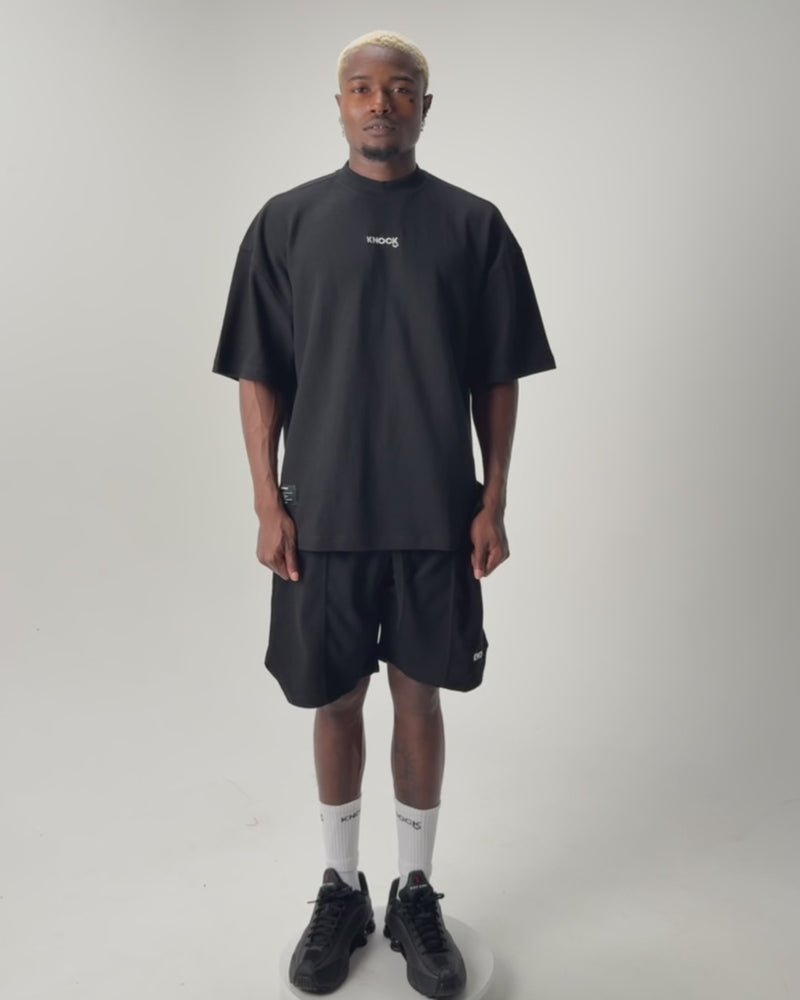 Upgrade your casual wear with these oversized black waffle knit shorts – where comfort meets structure in a minimalist, modern design.